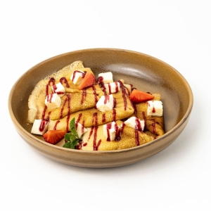 Неповторимый вкус: классические блины в сочетании с нежнейшей моцареллой и ягодным конфитюром, придутся по вкусу каждому!