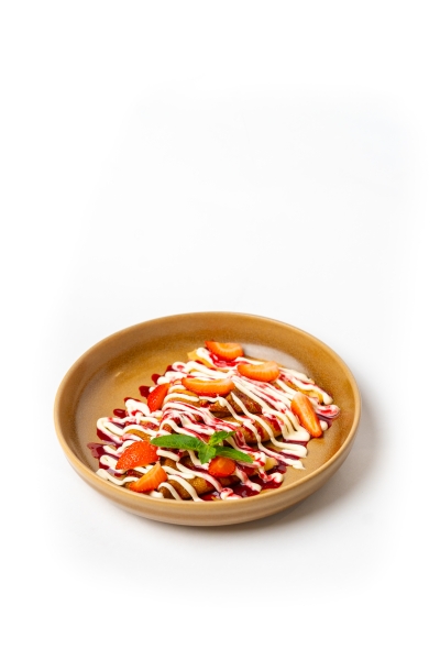 Нежные блинчики со свежими ягодами, заварным кремом и ягодным конфитюром.