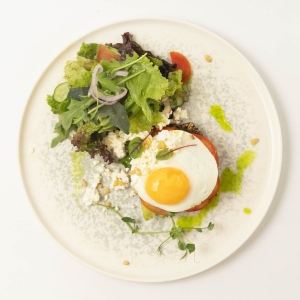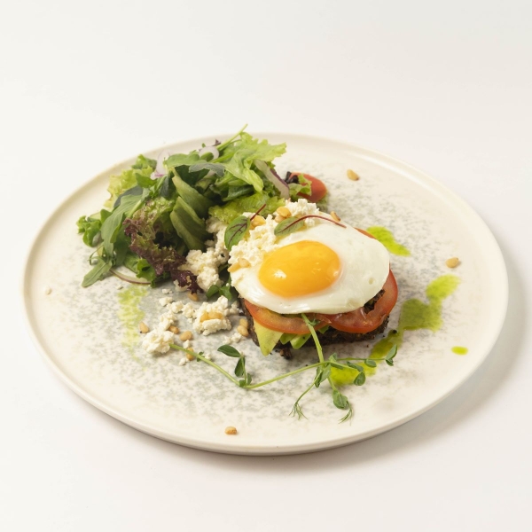 Полезный завтрак наполненый деревенским цельнозерновым хлебом, свежим салатом, авокадо, томатами, творогом и обжареным яйцом, сочетает в себе баланс жиров, белков и углеводов необходимых для продуктивного дня