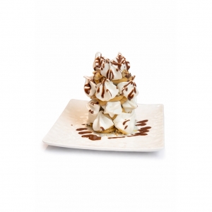 Хрустящее, воздушное безе щедро покрыто нежным кремом из варёной сгущёнки, который тает во рту, а грецкий орех добавляет насыщенность. Десерт с ярким вкусом детства и уютным сладким послевкусием.