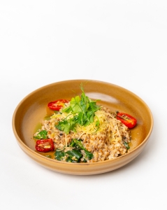 Ароматная гречка с шампиньонами в нежном сливочном соусе, с добавлением пармезана, шпината, вяленых томатов и капелькой зелёного масла - уют и вкус в каждой ложке.