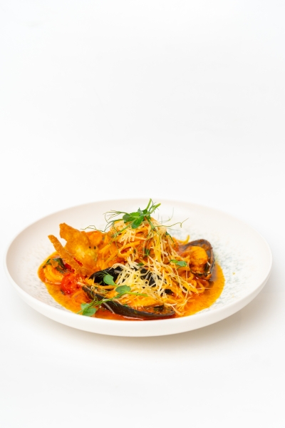 Спагетти в насыщенном томатном соусе с мидиями и креветками - простое и элегантное удовольствие из моря.
