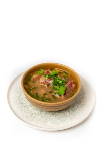 Суп который мы любим за неповторимое сочетание вкусов.Богатейшая кладезь витаминов из-за своего состава: бульон на основе бычьих хвостов, нута, сельдерея, свежих томатов, сладкого перца, репчатого лука, чеснока