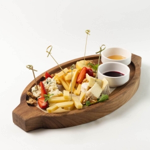 Ассорти сыров, подаётся с мёдом и грецким орехом. Отличный выбор к вину.