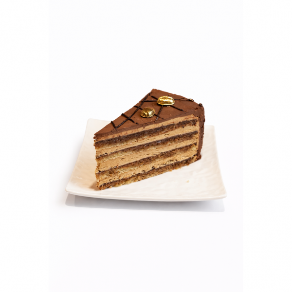 Нежнейший миндальный дакуаз, пропитанный ароматным кофе, сочетается с кремом на основе свежесваренного эспрессо и тонкой прослойкой тёмного шоколада. Глубокий, изысканный вкус с ярким кофейно-шоколадным акцентом и бархатным послевкусием.
